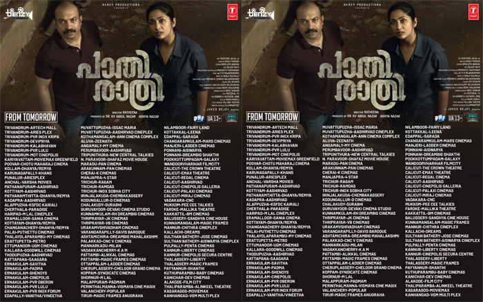 നവ്യ നായര്, സൗബിന് ഷാഹിര് എന്നിവരെ കേന്ദ്ര കഥാപാത്രങ്ങളാക്കി റത്തീന സംവിധാനം ചെയ്യുന്ന 'പാതിരാത്രി' എന്ന ചിത്രത്തിന്റെ റിലീസ് തീയതി പുറത്ത്. 2025 ഒക്ടോബര് 17 ന് ചിത്രം ആഗോള റിലീസായത്തും. ബെന്സി പ്രൊഡക്ഷന്സിന്റെ ബാനറില് ഡോക്ടര് കെ വി അബ്ദുള് നാസര്, ആഷിയ നാസര് എന്നിവര് ചേര്ന്നാണ് ചിത്രം നിര്മ്മിക്കുന്നത്. ചിത്രം കേരളത്തില് വിതരണം ചെയ്യുന്നത് ഡ്രീം ബിഗ് ഫിലിംസ്. മമ്മൂട്ടി നായകനായി എത്തിയ 'പുഴു' എന്ന ചിത്രത്തിന് ശേഷം റത്തീന സംവിധാനം ചെയ്ത രണ്ടാമത്തെ ചിത്രമാണിത്. സണ്ണി വെയ്ന്, ആന് അഗസ്റ്റിന് എന്നിവരും ചിത്രത്തില് നിര്ണ്ണായക വേഷങ്ങളിലെത്തുന്നുണ്ട്.