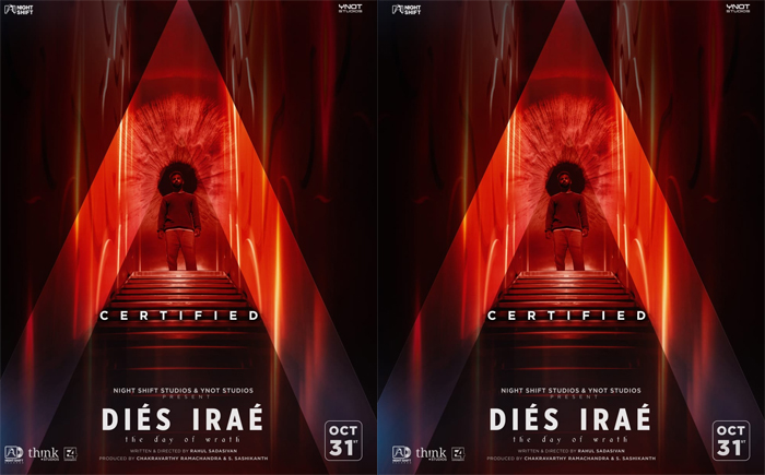 സെന്സറിങ് പൂര്ത്തിയായപ്പോള് A സര്ട്ടിഫിക്കറ്റ് ലഭിച്ച ചിത്രം പ്രേക്ഷകരെ ആദ്യാവസാനം ആകാംഷയുടെ മുള്മുനയില് നിര്ത്തുന്ന ഒന്നായിരിക്കുമെന്ന സൂചനയാണ് നേരത്തെ പുറത്ത് വന്ന ട്രെയ്ലര് നല്കിയത്. വലിയ പ്രേക്ഷക- നിരൂപക പ്രശംസ നേടിയ 'ഭ്രമയുഗം' എന്ന ചിത്രത്തിന്റെ വിജയത്തിന് ശേഷം, രാഹുല് സദാശിവന്- നൈറ്റ് ഷിഫ്റ്റ് സ്റ്റുഡിയോസ് ടീം ഒന്നിക്കുന്ന ചിത്രമാണ് 'ഡീയസ് ഈറേ'. മികച്ച ഹൊറര് അനുഭവം സമ്മാനിക്കുന്ന, വമ്പന് സാങ്കേതിക നിലവാരത്തില് ഒരുക്കിയ ചിത്രമാണ് ഇതെന്ന പ്രതീതിയാണ് ചിത്രത്തിന്റെ ആദ്യം പുറത്ത് വന്ന ടീസറും, പിന്നാലെ വന്ന ട്രെയ്ലറും സമ്മാനിച്ചത്.