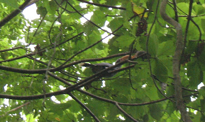 മരങ്ങൾക്കിടയിലൂടെ വീണ്ടും പ്രധാനപാതയിലേയ്ക്ക്. ചെളിയിൽ തെന്നി വീഴാതെ വഴിയിൽ മാത്രം ശ്രദ്ധിച്ച് മുന്നോട്ട് നീങ്ങവെ ഒരു പക്ഷിയുടെ ശബ്ദം വളരെ അടുത്തുനിന്നും കേട്ടു. പെട്ടന്ന് തലയുയർത്തിയ ഞാൻ ശരിക്കും ഞെട്ടി.