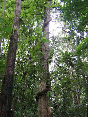 അടുത്തുള്ള ഒരു മരത്തിൽ ചുറ്റിക്കയറ്റിയ വള്ളിയാണ് ഞെട്ടിച്ചത്. ആദ്യം കണ്ടപ്പോൾ ശരിക്കും പാമ്പാണെന്നാണ് ഞാൻ കരുതിയത്. രജവെമ്പാലയെക്കുറിച്ചുള്ള ഒരു ഡൊക്യുമെന്ററി ഡിസ്കവറി ചാനൽ ചിത്രീകരിച്ചത് മുളങ്കുഴി മുതൽ ഭൂതത്താൻകെട്ടു വരെയുള്ള സ്ഥലത്തു വെച്ചാണ് ഇങ്ങോട്ടുള്ള യാത്രയ്ക്കിടയിൽ ബസ്സിൽ വെച്ച് ഒരാൾ പറഞ്ഞിരുന്നു. അത് ഇങ്ങനെ മനസ്സിൽ കിടന്നതാവാം പെട്ടന്ന് പേടിയ്ക്കാൻ കാരണം.